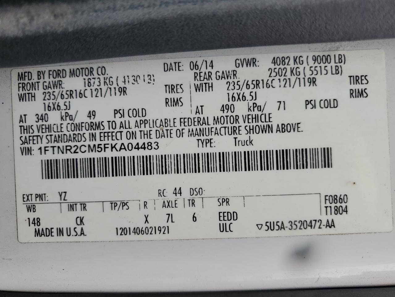 FORD TRANSIT 3.7 2015 р.в., Задній привід (1FTNR2CM5FKA04483) з США