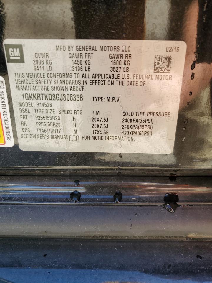 Колір ЧорнийЦиліндри 6VIN 1GKKRTKD3GJ306358Стан Заводиться та їде (перевірено)Ушкодження Передня або задня