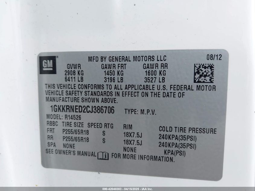 GMC ACADIA 3.6 2012 р.в., Передній привід (1GKKRNED2CJ386706) з США