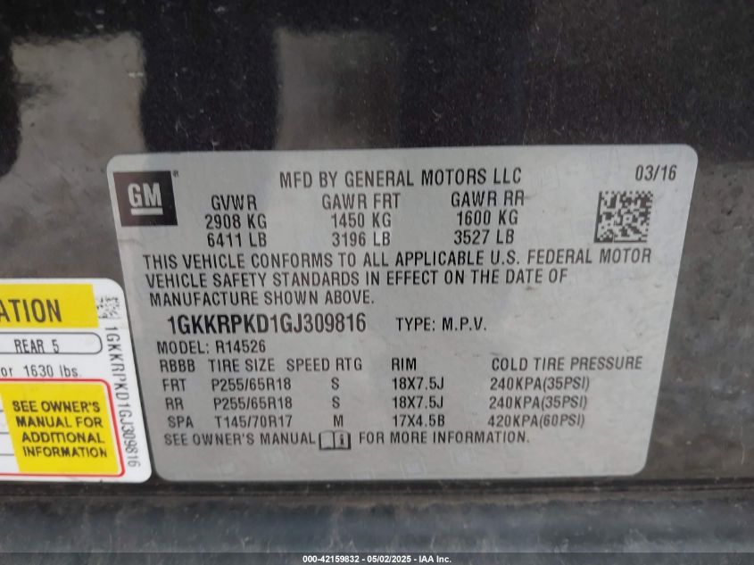 GMC ACADIA 3.6 2016 р.в., Передній привід (1GKKRPKD1GJ309816) з США