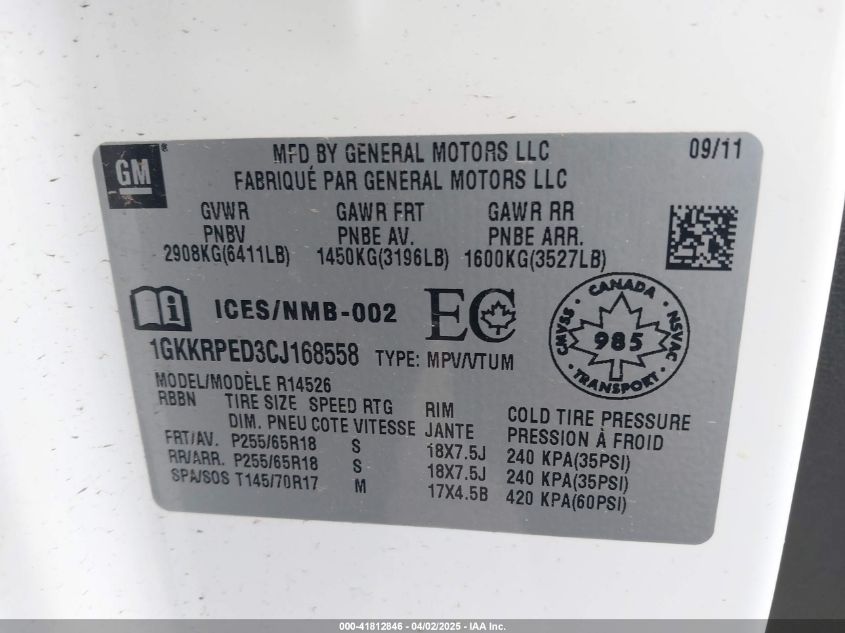 GMC ACADIA 3.6 2012 р.в., Передній привід (1GKKRPED3CJ168558) з США
