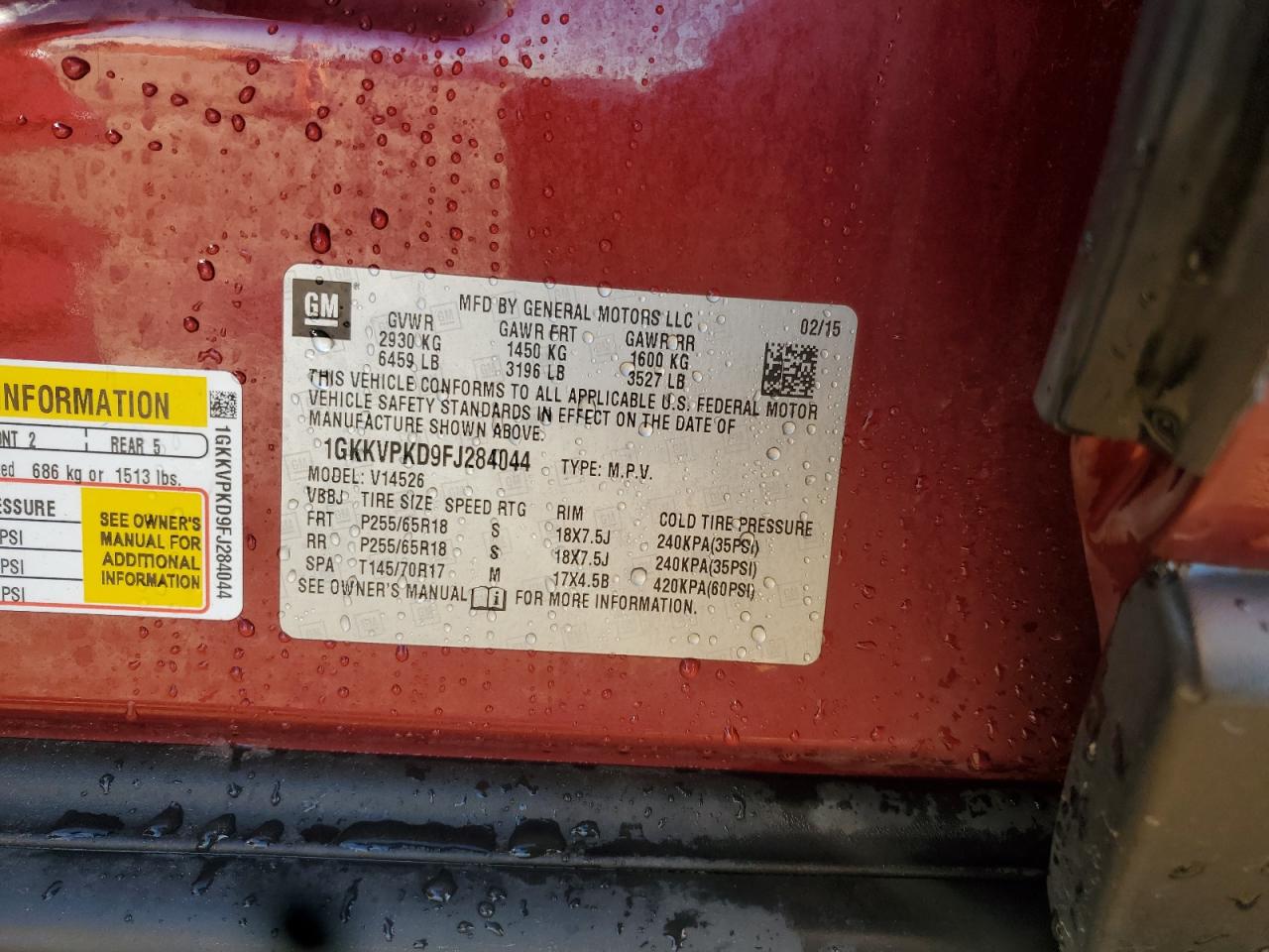 Колір ЧервонийЦиліндри 6Привід Повний привідVIN 1GKKVPKD9FJ284044Стан Заводиться та їде (перевірено)Ушкодження З боківДата аукціону 2025-11-04