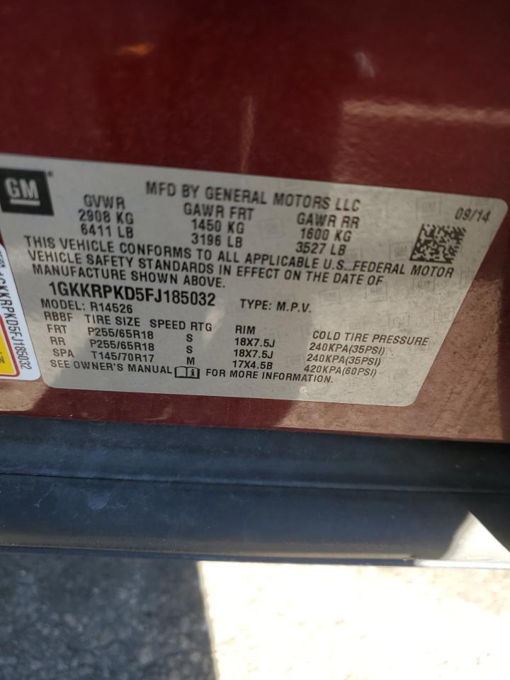 Колір БордовийЦиліндри 6VIN 1GKKRPKD5FJ185032Стан Заводиться та їде (перевірено)Ушкодження Передня або задняДата аукціону 2025-11-05