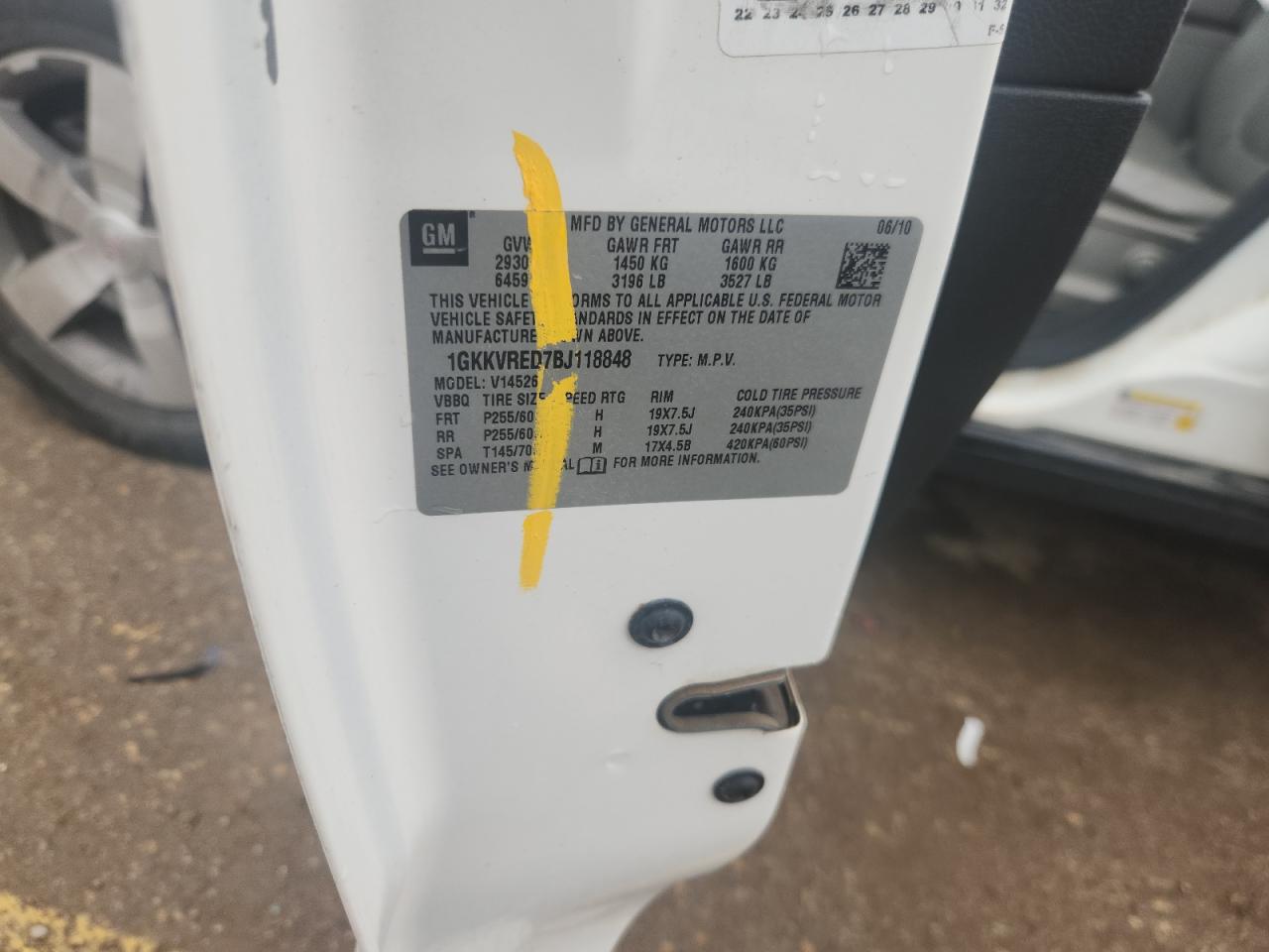 Колір БілийЦиліндри 6Привід Повний привідVIN 1GKKVRED7BJ118848Стан Заводиться та їде (перевірено)Ушкодження ГрадДата аукціону 2025-11-03