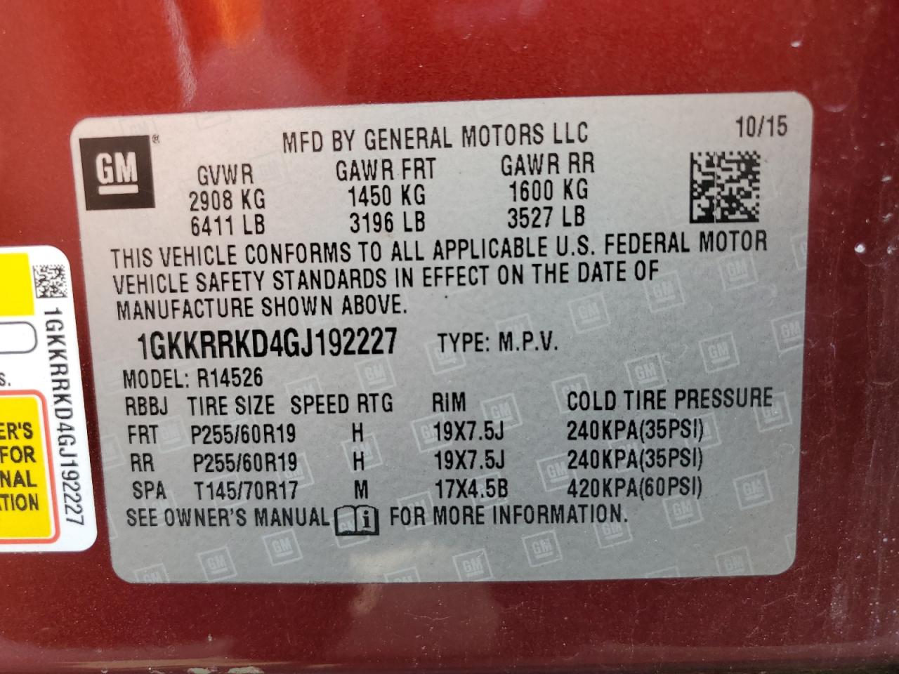 Колір БургундіяЦиліндри 6VIN 1GKKRRKD4GJ192227Стан НевідомоУшкодження З боків