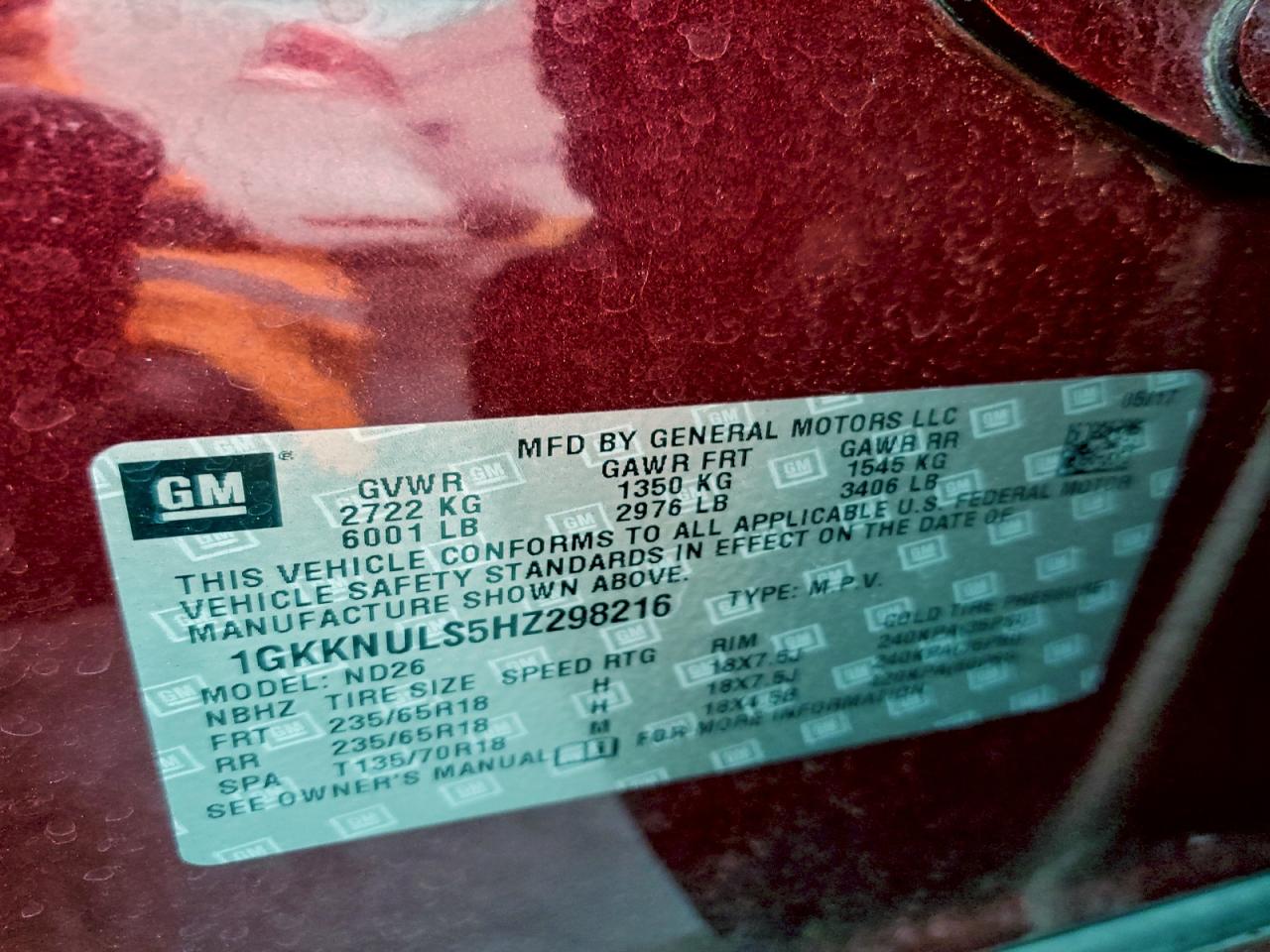 Колір БургундіяЦиліндри 6Привід Повний привідVIN 1GKKNULS5HZ298216Стан Заводиться та їде (перевірено)Ушкодження Передня або задня