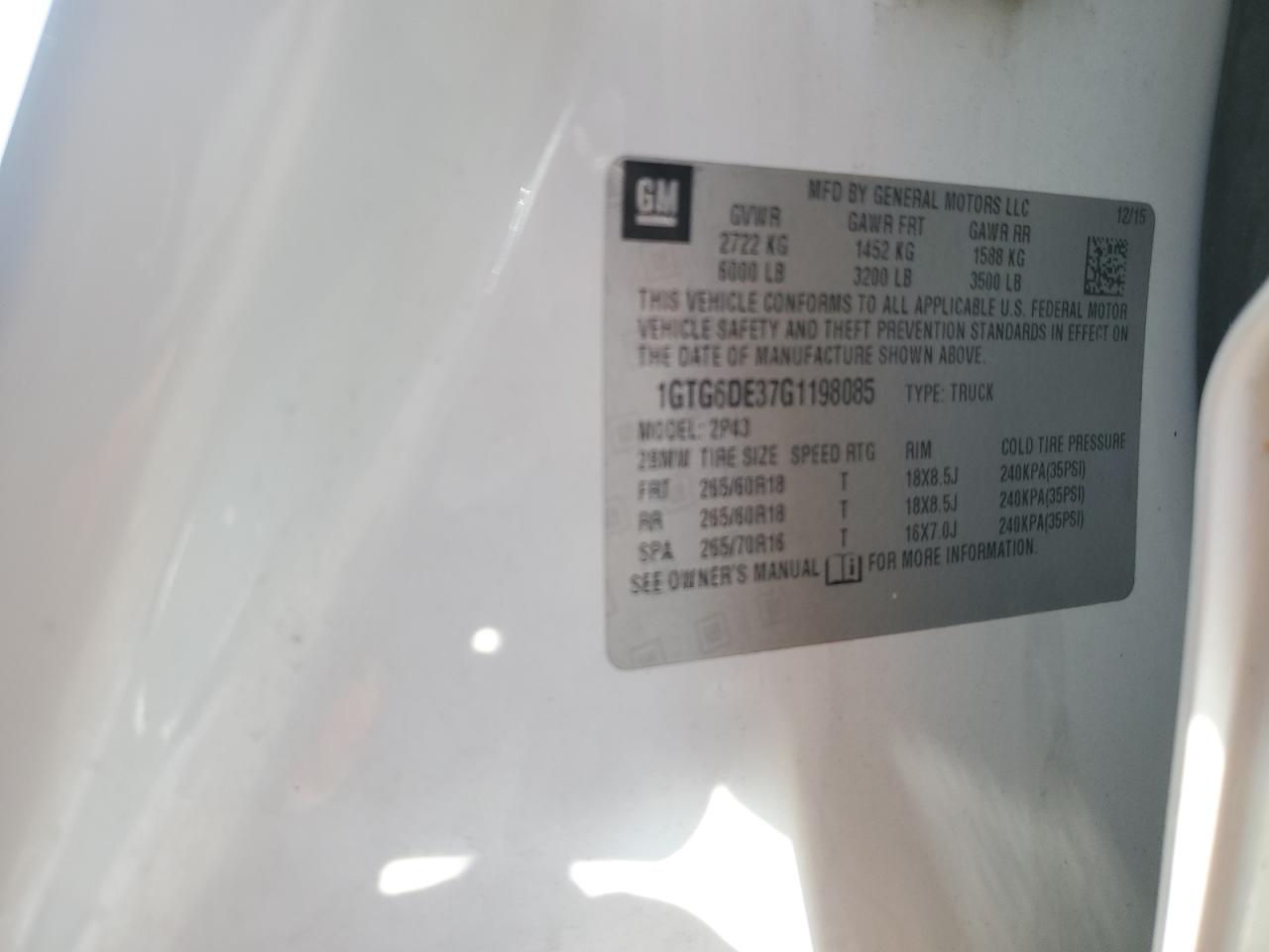 Колір БілийЦиліндри 6Привід 4x4 з заднім приводомVIN 1GTG6DE37G1198085Стан Заводиться та їде (перевірено)Ушкодження Передня або задня