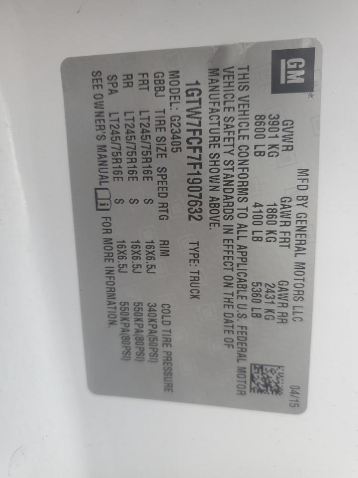 Колір БілийЦиліндри 8Привід Задній привідVIN 1GTW7FCF7F1907632Стан Заводиться та їде (перевірено)Ушкодження Передня або задня