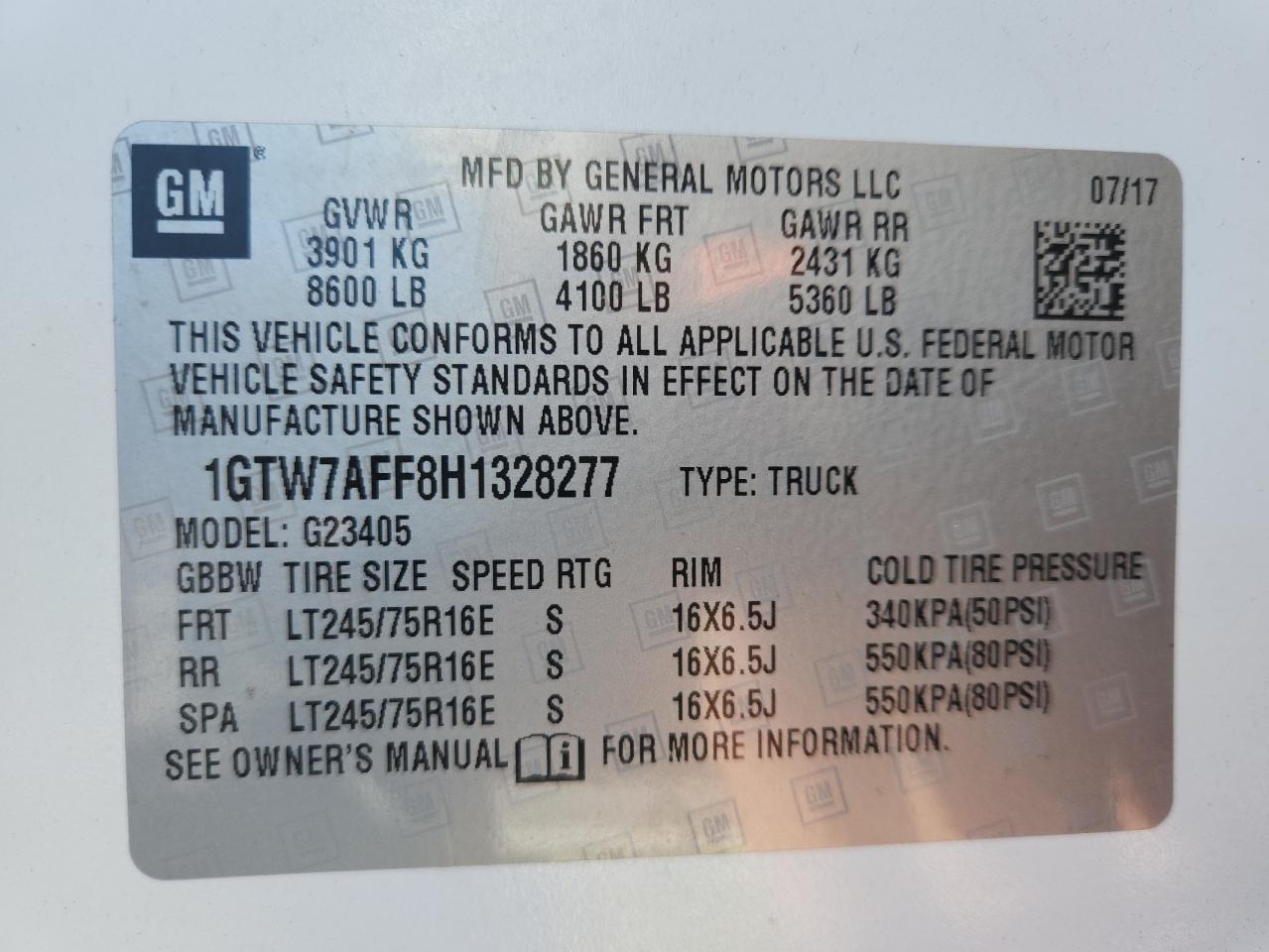 Колір СинійЦиліндри 8Привід Задній привідVIN 1GTW7AFF8H1328277Стан НевідомоУшкодження З боків