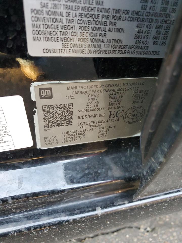Колір ЧорнийЦиліндри 6Привід 4x4 з заднім приводомVIN 1GTU9EET0MZ427574Стан ЗаводитьсяУшкодження Передня або задня