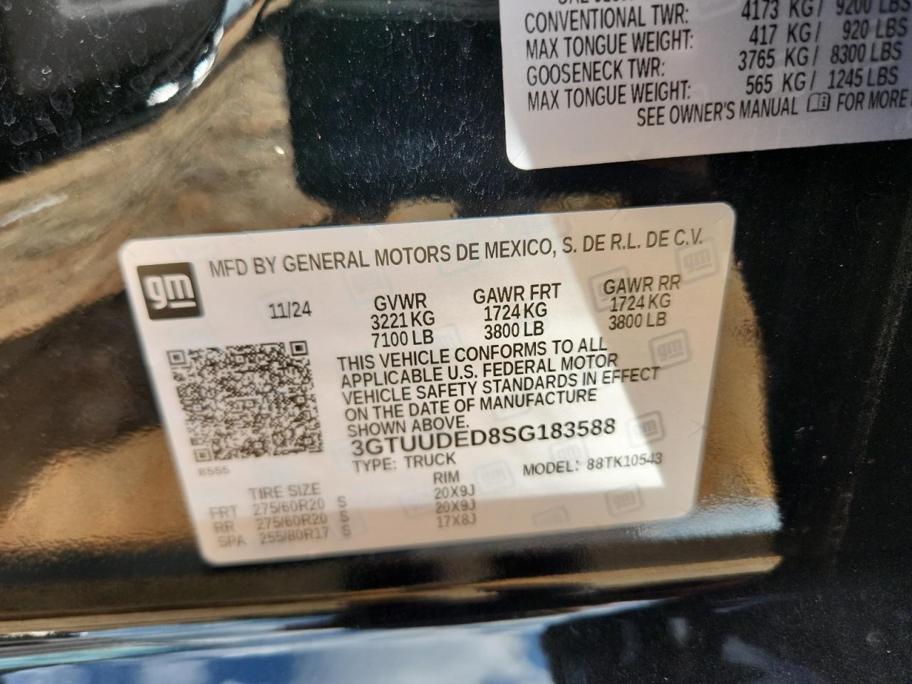 Колір ЧорнийЦиліндри 8Привід 4x4 з заднім приводомVIN 3GTUUDED8SG183588Стан Заводиться та їде (перевірено)Ушкодження Передня або задня