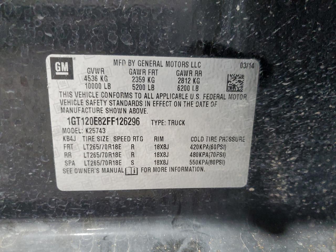 Колір ЧорнийЦиліндри 8Привід 4x4 з заднім приводомVIN 1GT120E82FF126296Стан НевідомоУшкодження З боків
