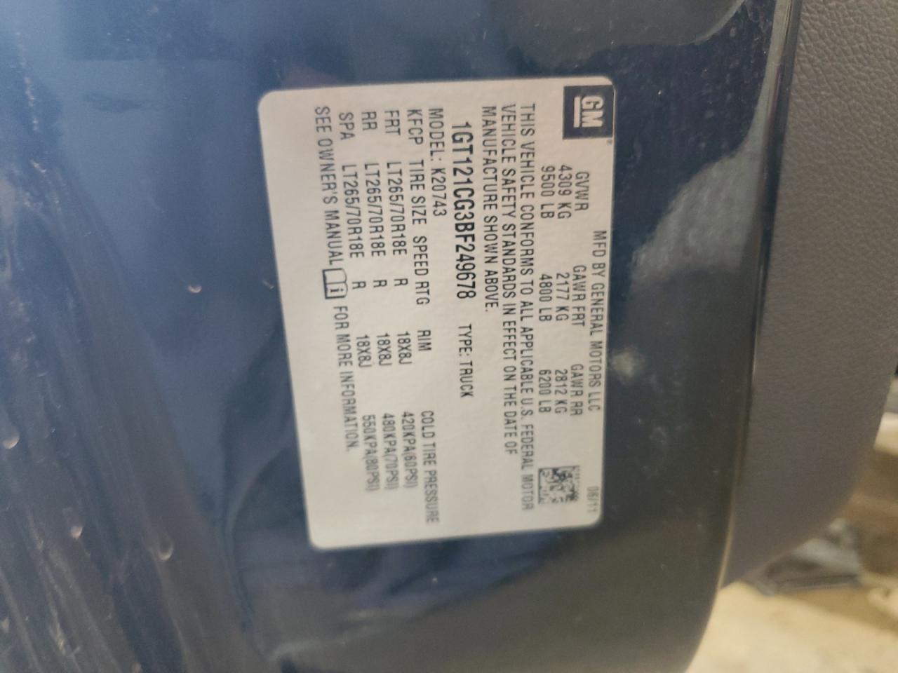 Колір ЧорнийЦиліндри 8Привід 4x4 з заднім приводомVIN 1GT121CG3BF249678Стан ЗаводитьсяУшкодження Передня або задня