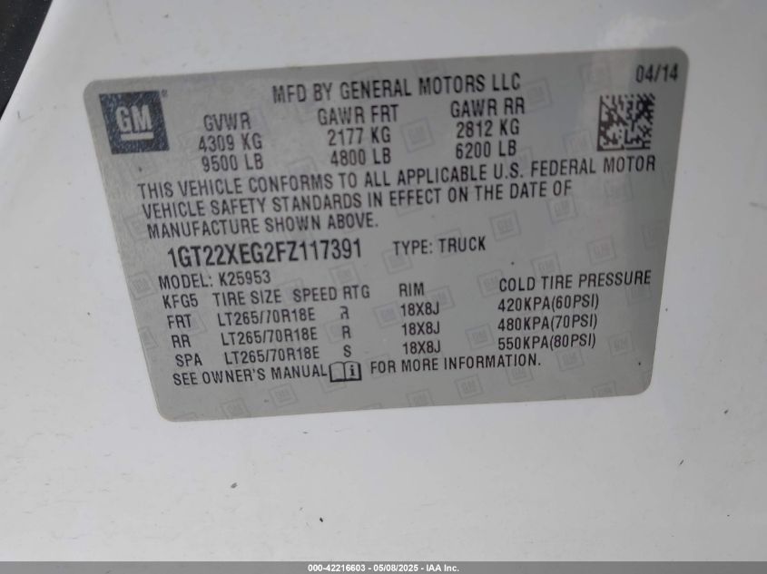 Колір БілийЦиліндри 8Привід Повний привідVIN 1GT22XEG2FZ117391Стан СтаціонарноУшкодження Передня ліва