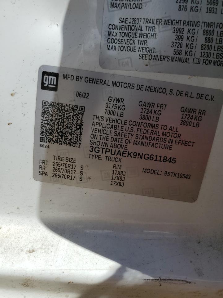 GMC SIERRA 2.7 2022 р.в., 4x4 з заднім приводом (3GTPUAEK9NG611845) з США