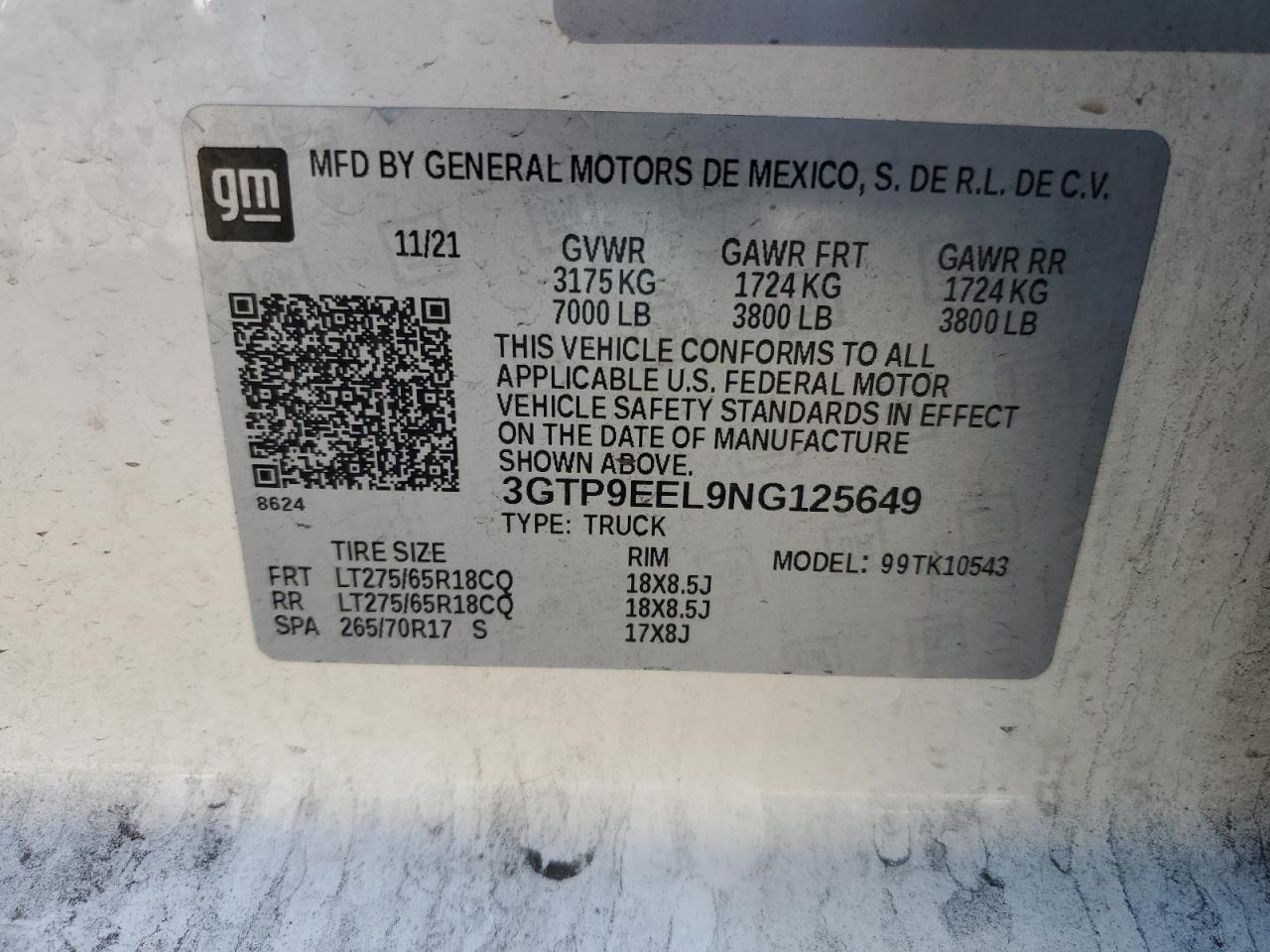 Колір БілийЦиліндри 8Привід 4x4 з заднім приводомVIN 3GTP9EEL9NG125649Стан ЗаводитьсяУшкодження Передня або задня