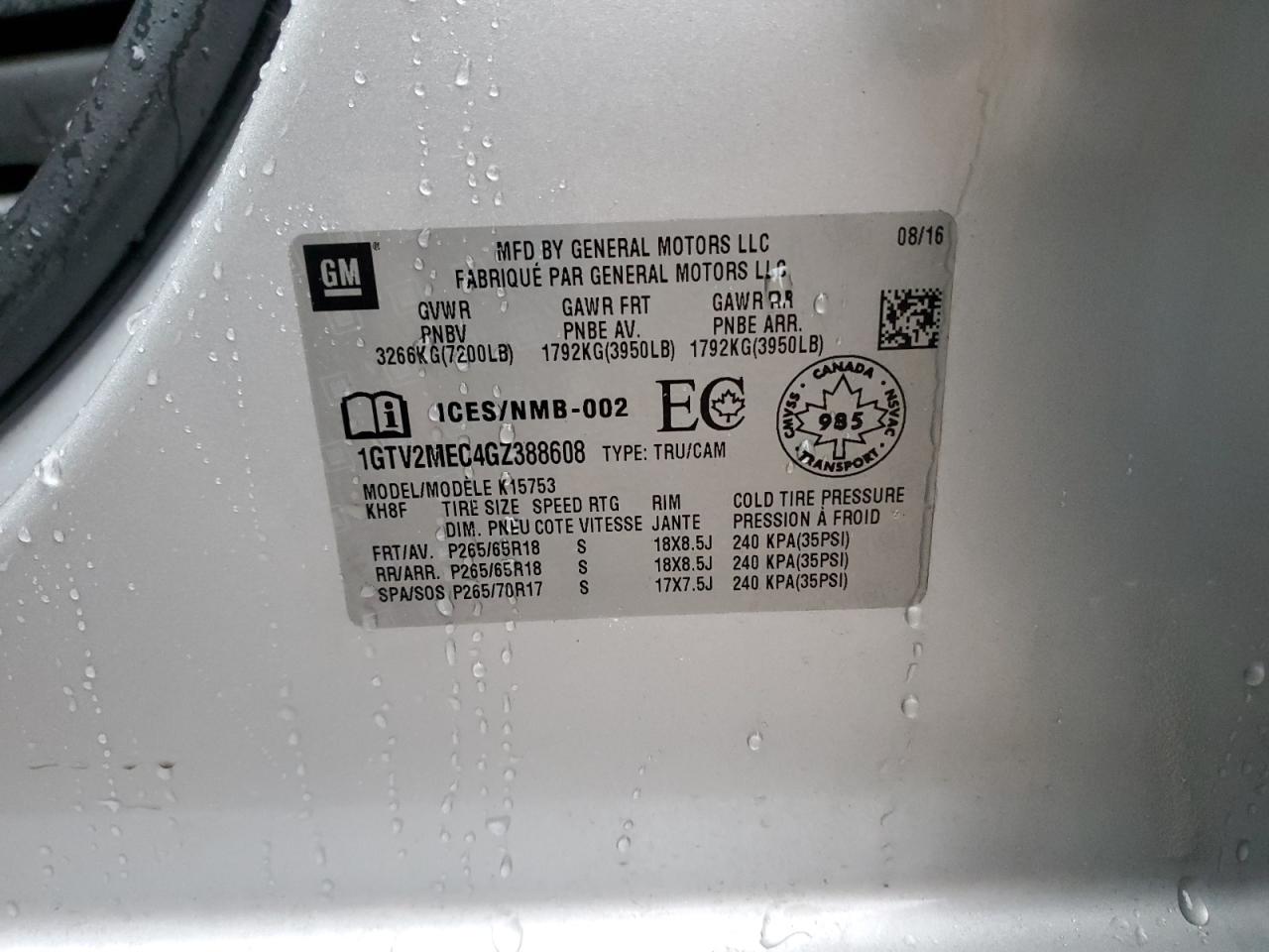Колір СрібнийЦиліндри 8Привід 4x4 з заднім приводомVIN 1GTV2MEC4GZ388608Стан Заводиться та їде (перевірено)Ушкодження Передня або задня