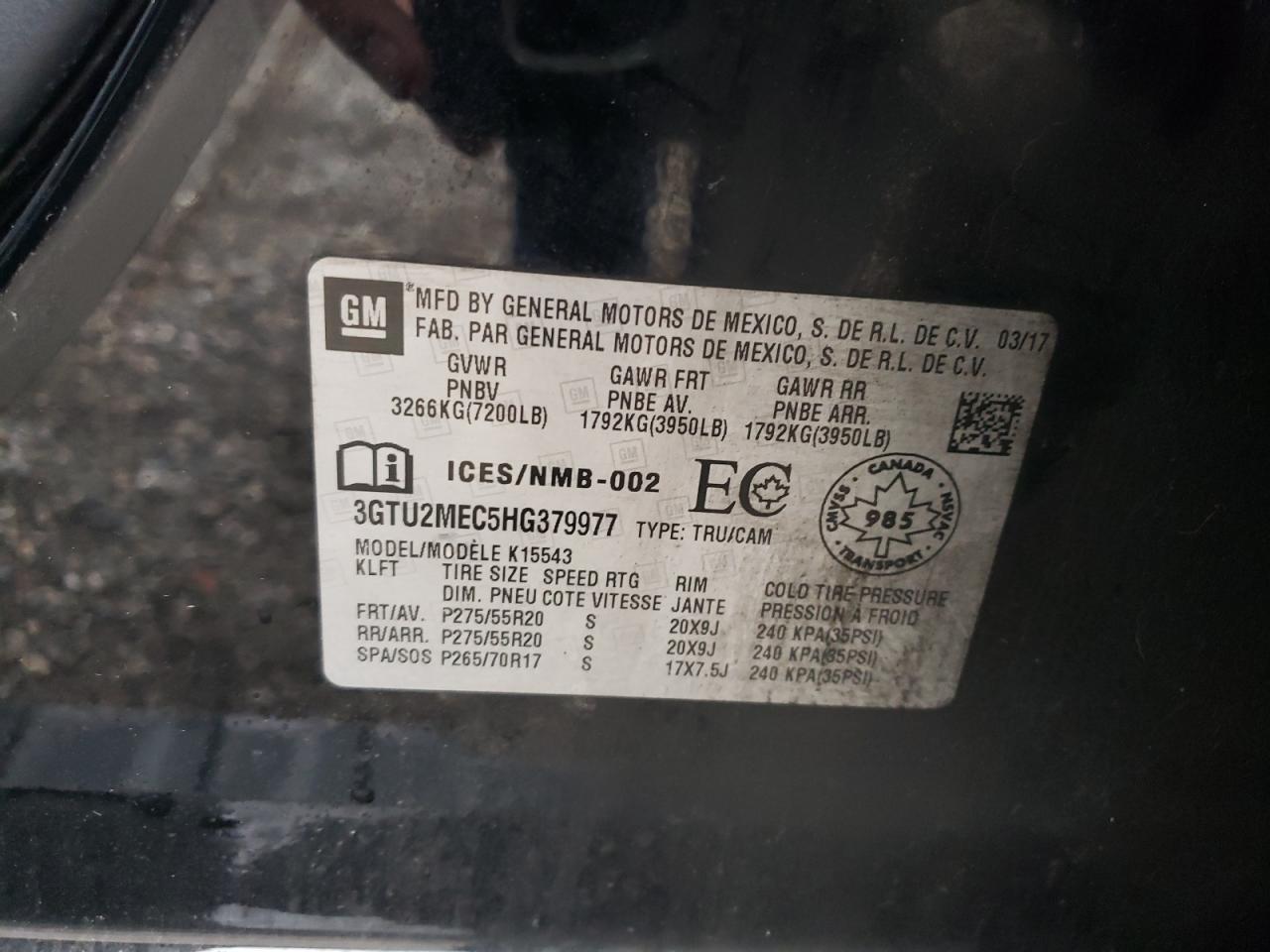 Колір ЧорнийЦиліндри 8Привід 4x4 з заднім приводомVIN 3GTU2MEC5HG379977Стан Заводиться та їде (перевірено)Ушкодження Механічні пошкодження