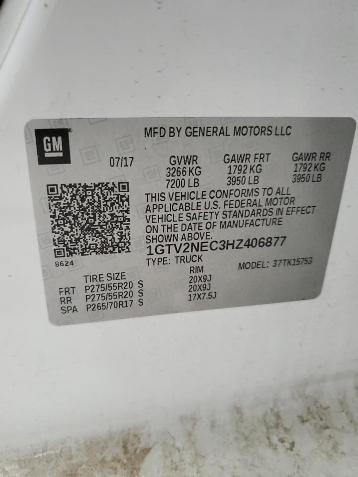 Колір БілийЦиліндри 8Привід 4x4 з заднім приводомVIN 1GTV2NEC3HZ406877Стан Заводиться та їде (перевірено)Ушкодження Передня або задняДата аукціону 2025-11-04