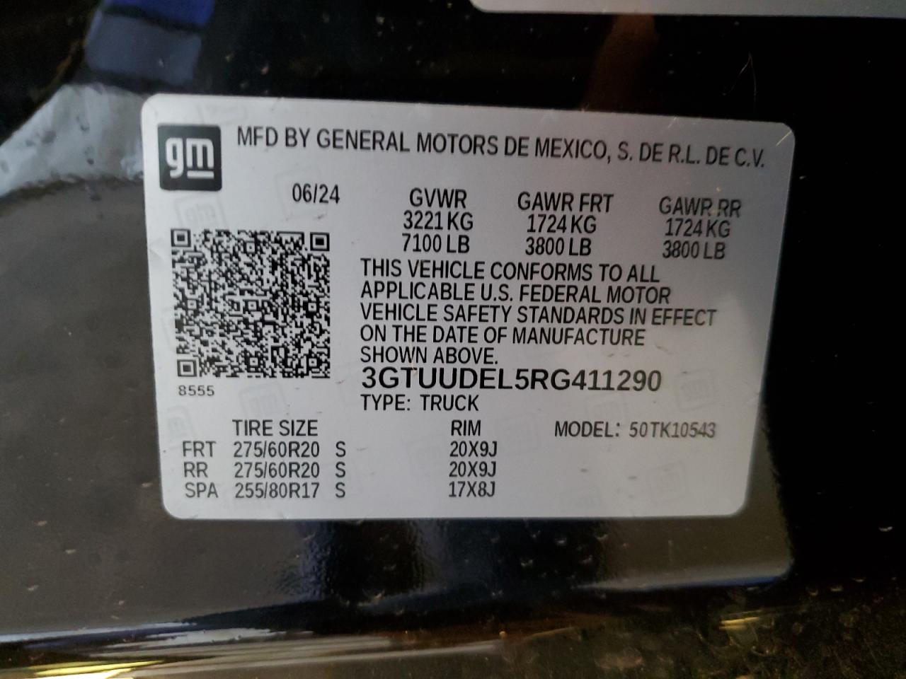 GMC SIERRA 6.2 2024 р.в., 4x4 з заднім приводом (3GTUUDEL5RG411290) з США