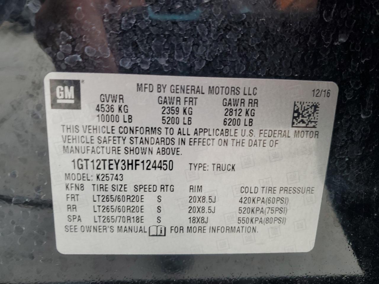Колір ЧорнийЦиліндри 8Привід 4x4 з заднім приводомVIN 1GT12TEY3HF124450Стан ЗаводитьсяУшкодження Передня або задня