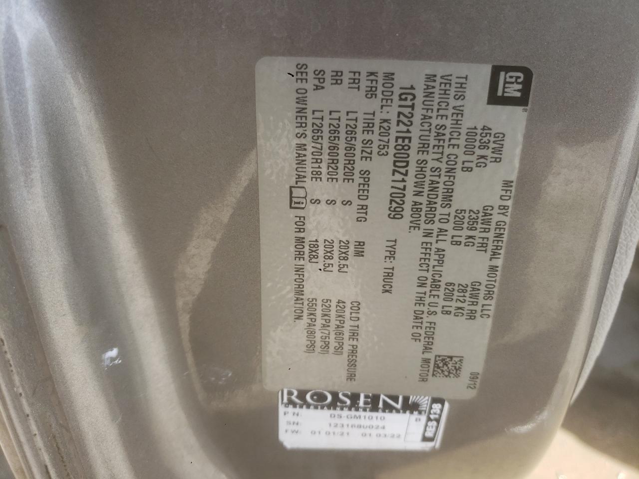 GMC SIERRA 6.6 2013 р.в., 4x4 з заднім приводом (1GT221E80DZ170299) з США