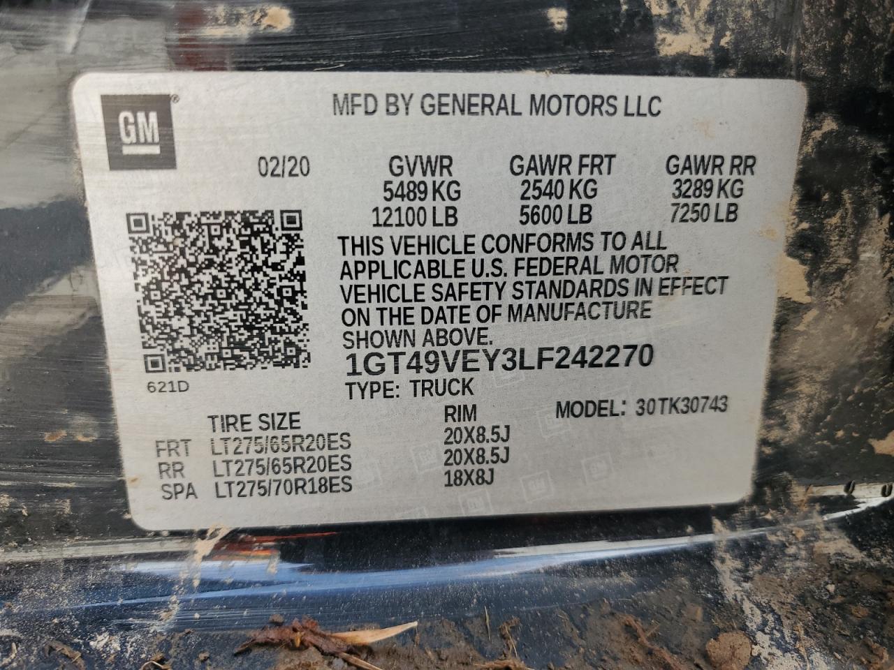 GMC SIERRA 6.6 2020 р.в., 4x4 з заднім приводом (1GT49VEY3LF242270) з США