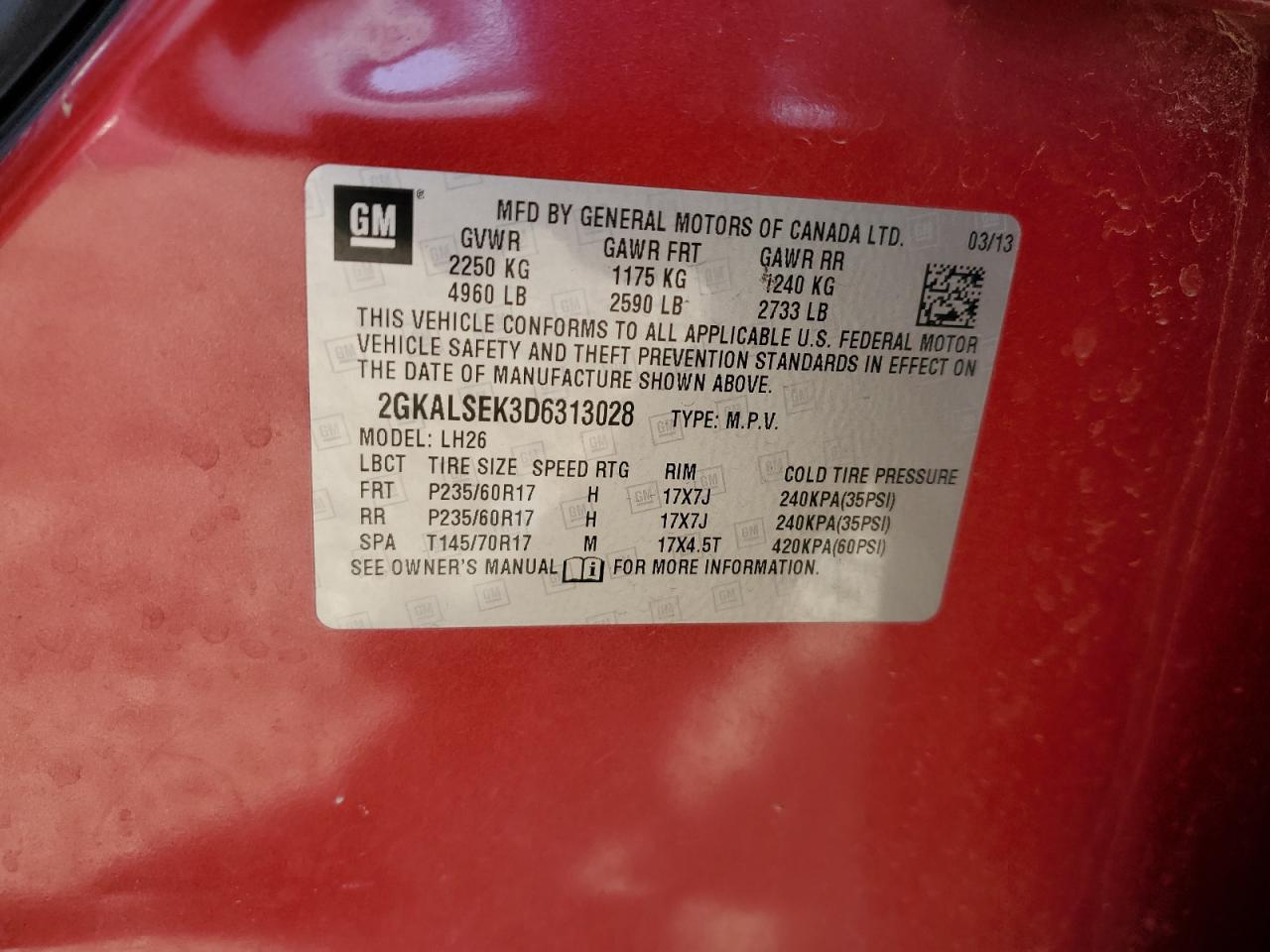 Колір ЧервонийЦиліндри 4VIN 2GKALSEK3D6313028Стан Заводиться та їде (перевірено)Ушкодження Передня або задня