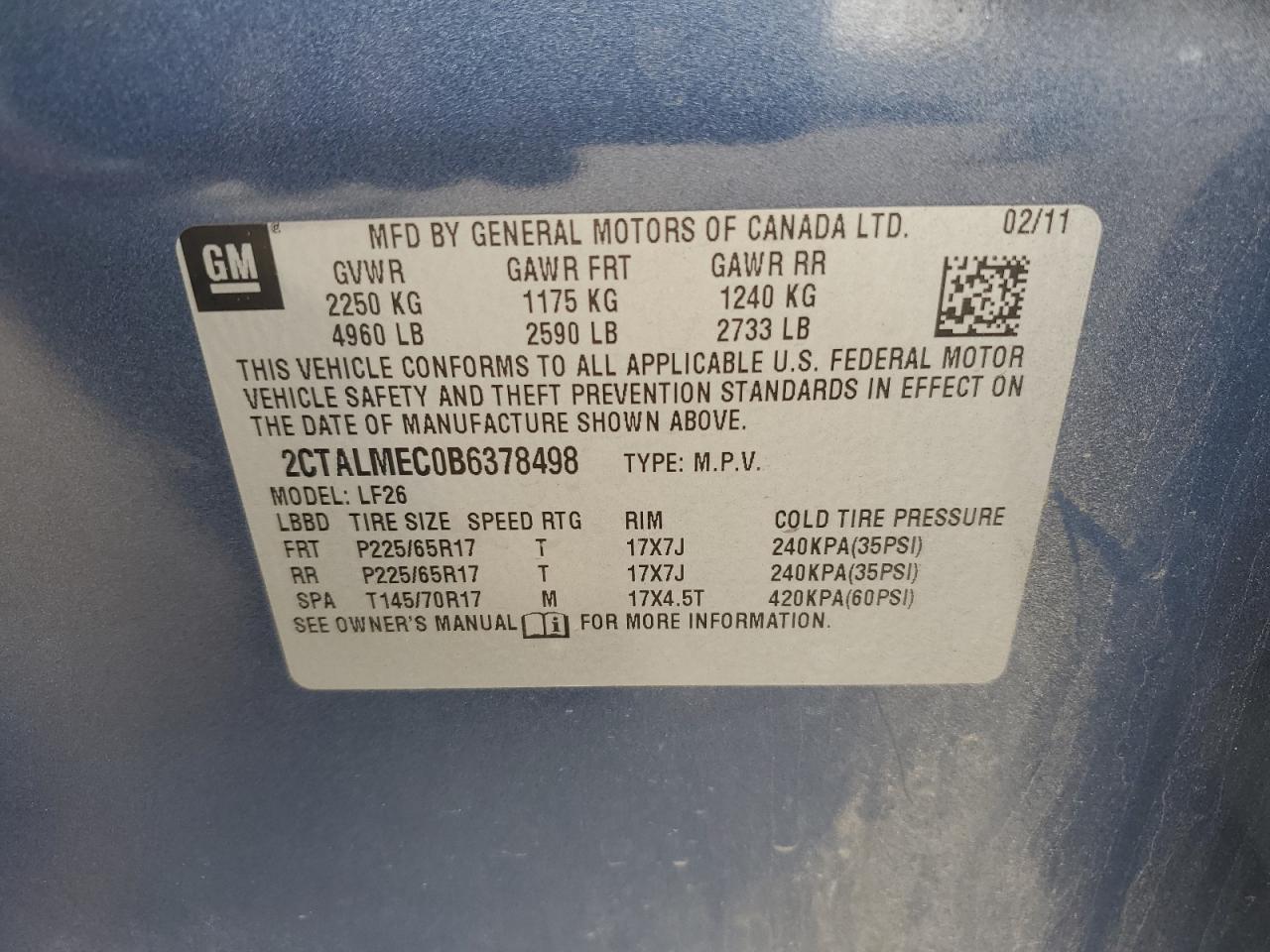 GMC TERRAIN 2.4 2011 р.в., (2CTALMEC0B6378498) з США