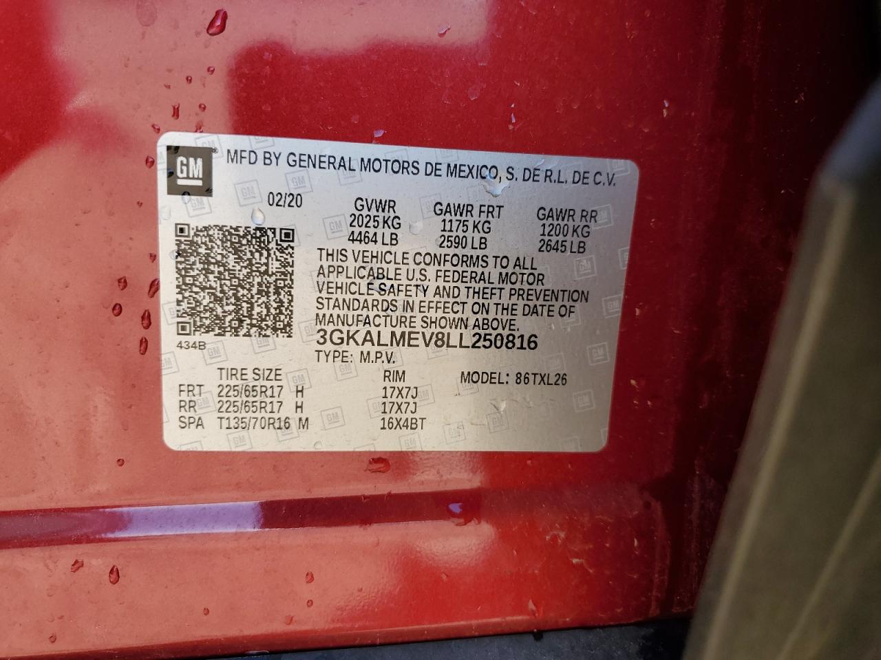 Колір ЧервонийЦиліндри 4VIN 3GKALMEV8LL250816Стан НевідомоУшкодження Перекидання