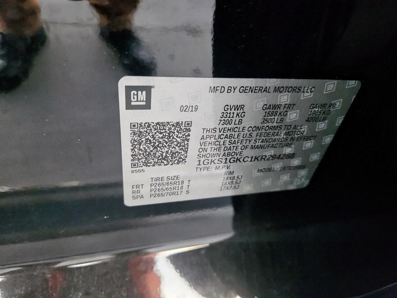 GMC YUKON 5.3 2019 р.в., Задній привід (1GKS1GKC1KR294288) з США