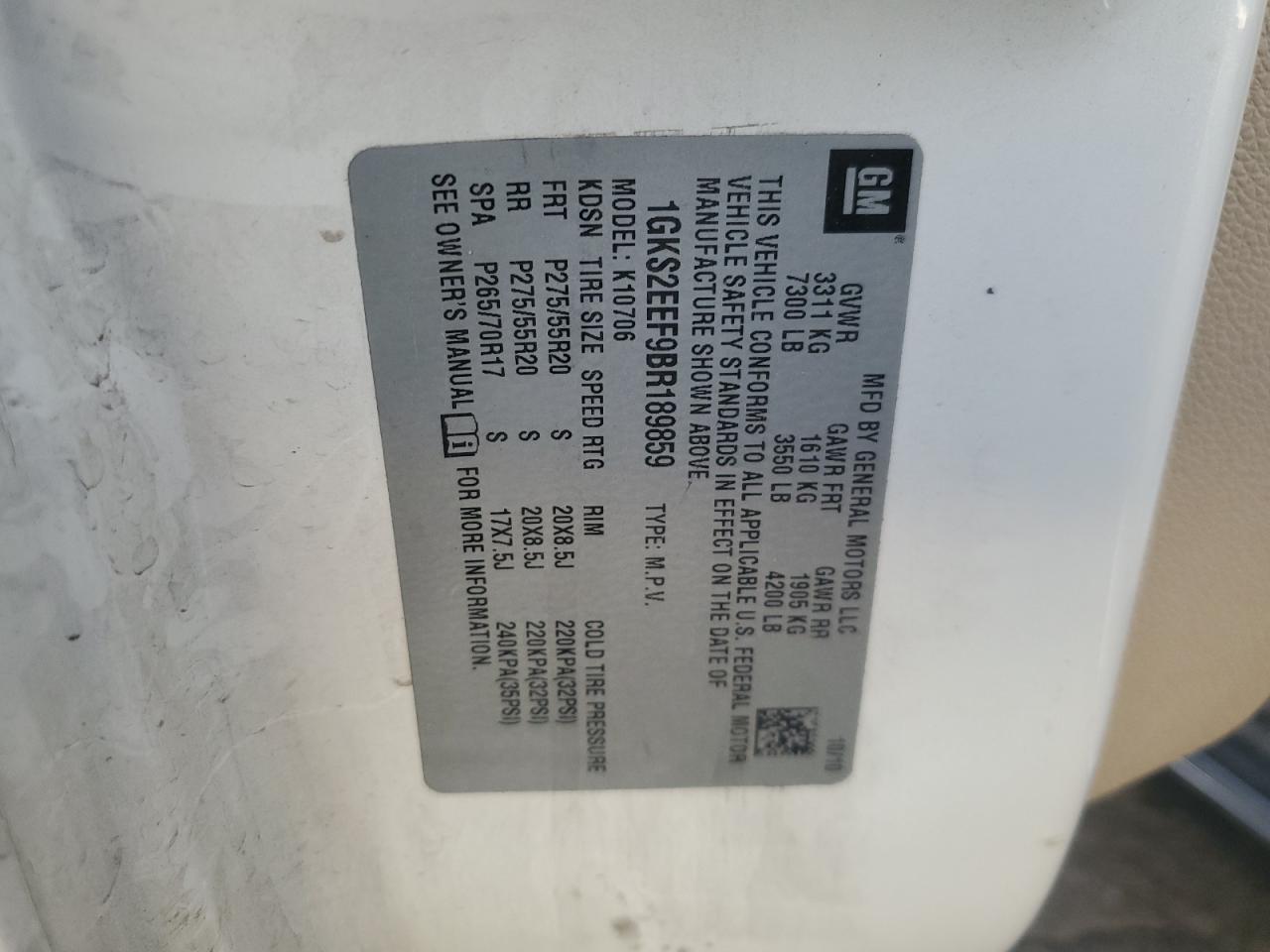 Колір БілийЦиліндри 8Привід Повний привідVIN 1GKS2EEF9BR189859Стан Заводиться та їде (перевірено)Ушкодження Передня або задня