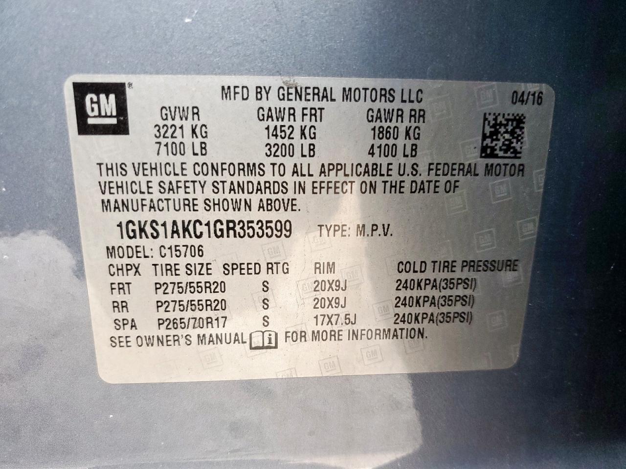 Колір СинійЦиліндри 8Привід Задній привідVIN 1GKS1AKC1GR353599Стан Заводиться та їде (перевірено)Ушкодження Незначні