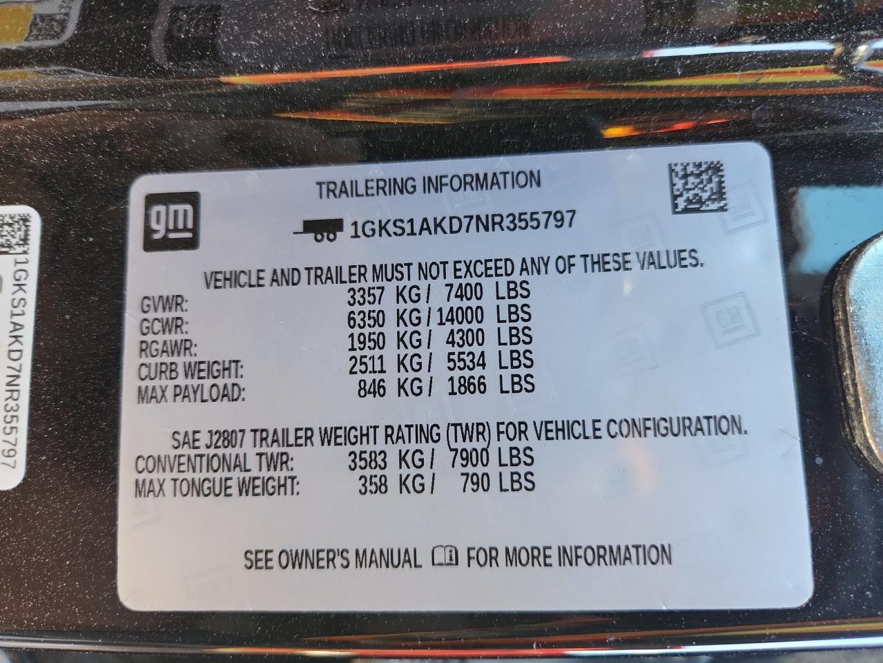 GMC YUKON 5.3 2022 р.в., Задній привід (1GKS1AKD7NR355797) з США