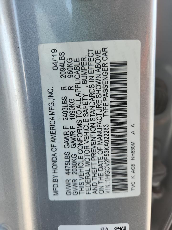 HONDA ACCORD 2.0 2019 р.в., (1HGCV2F53KA022263) з США