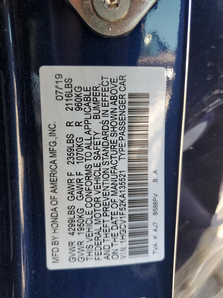 HONDA ACCORD 1.5 2019 р.в., (1HGCV1F52KA135521) з США