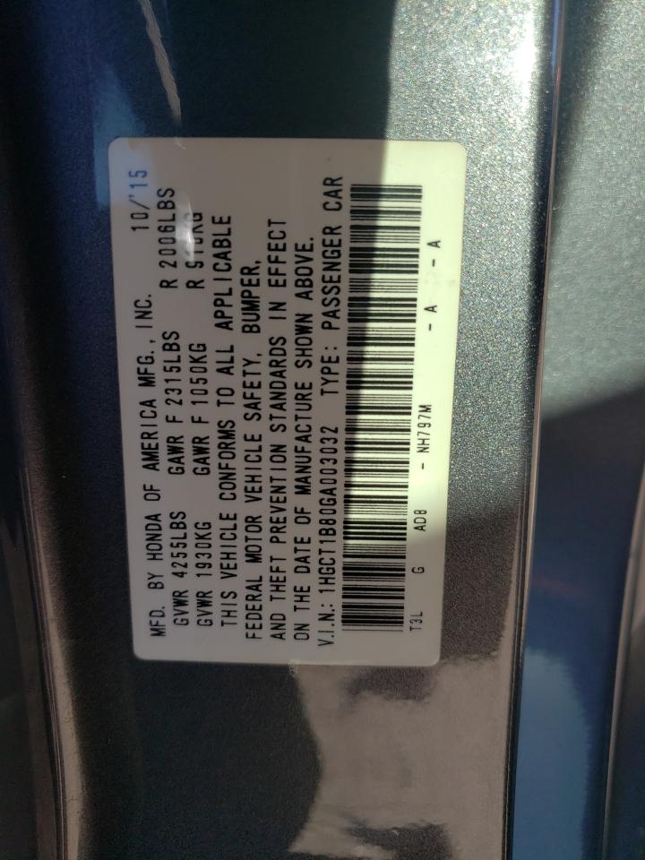 Колір Деревне вугілляЦиліндри 4VIN 1HGCT1B80GA003032Стан Заводиться та їде (перевірено)Ушкодження Передня або задня