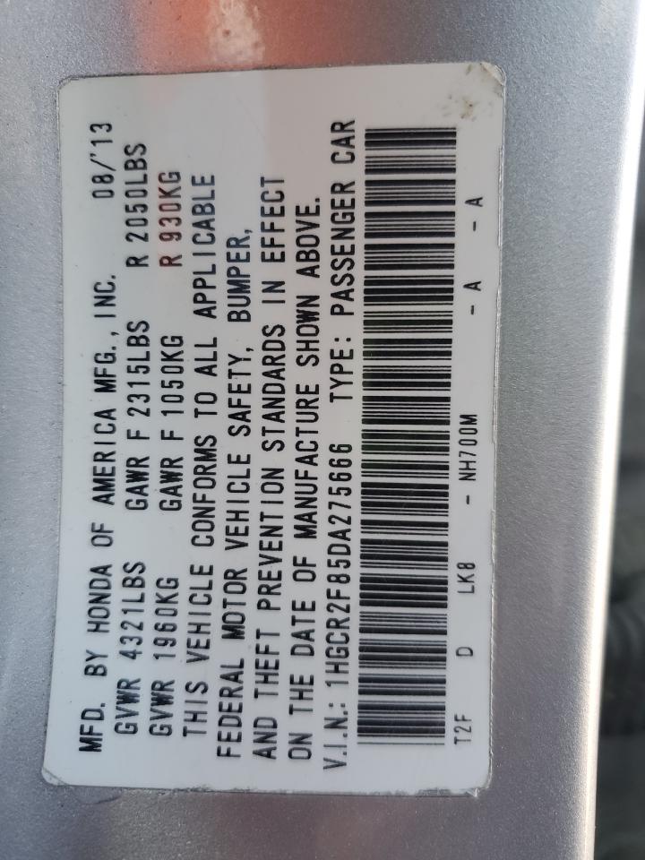 Колір СрібнийЦиліндри 4VIN 1HGCR2F85DA275666Стан НевідомоУшкодження Передня або задня