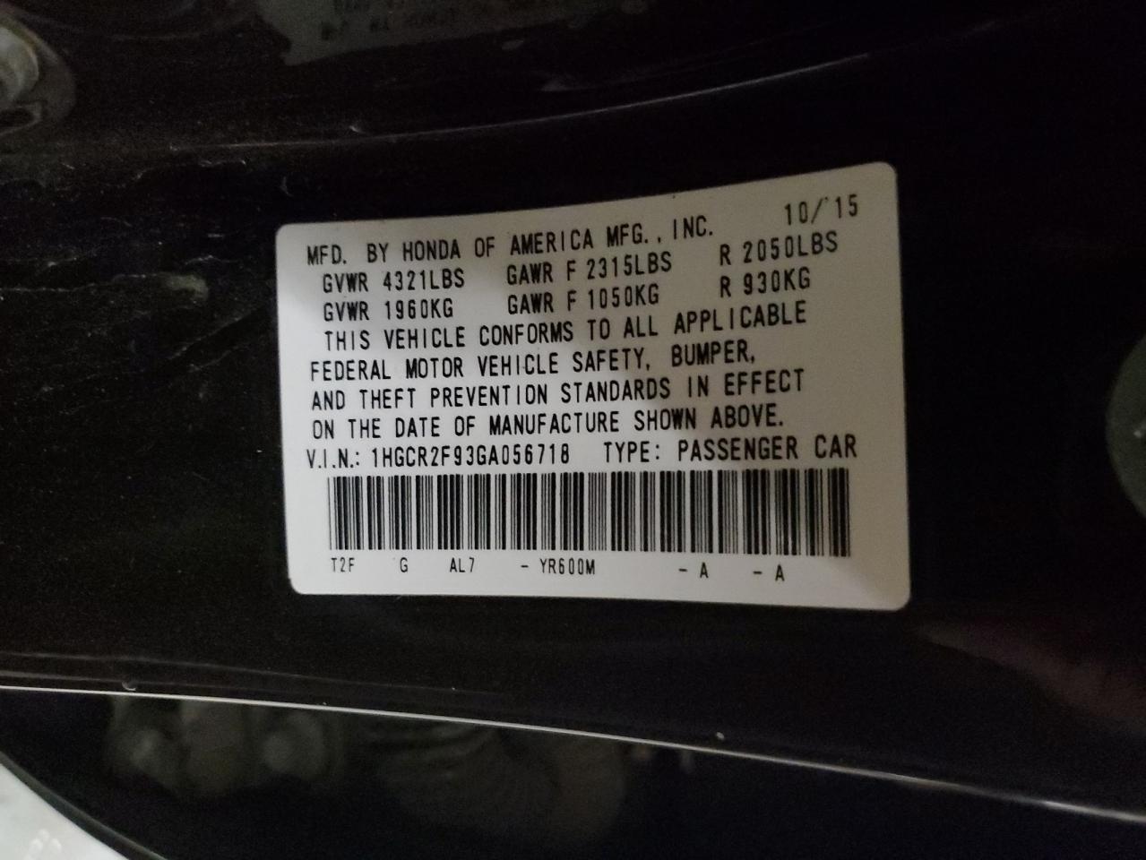 2016 HONDA ACCORD LX