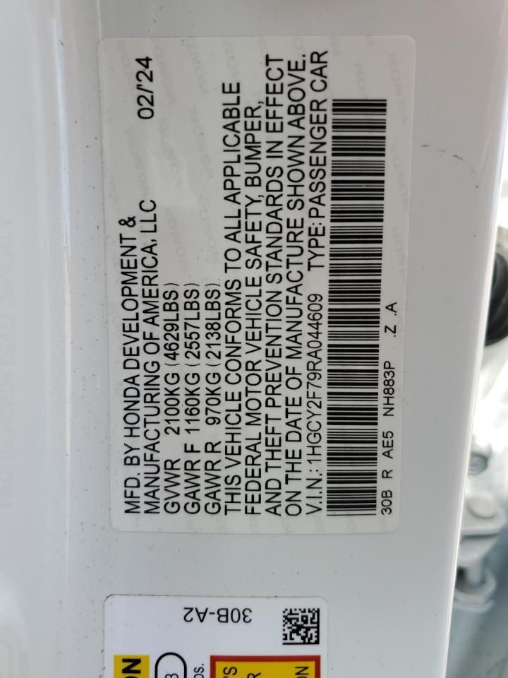 HONDA ACCORD 2.0 2024 р.в., (1HGCY2F79RA044609) з США