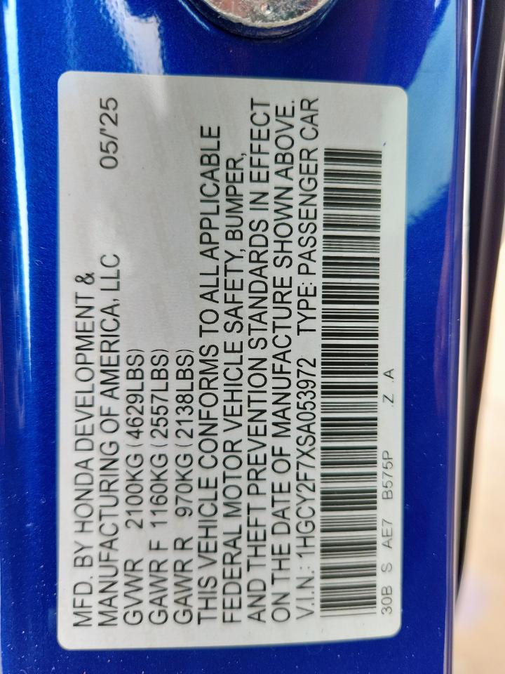 Колір СинійЦиліндри 4VIN 1HGCY2F7XSA053972Стан НевідомоУшкодження З боків