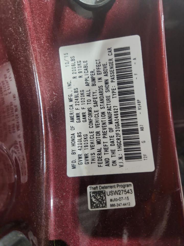 HONDA ACCORD 2.4 2016 р.в., (1HGCR2F30GA046627) з США