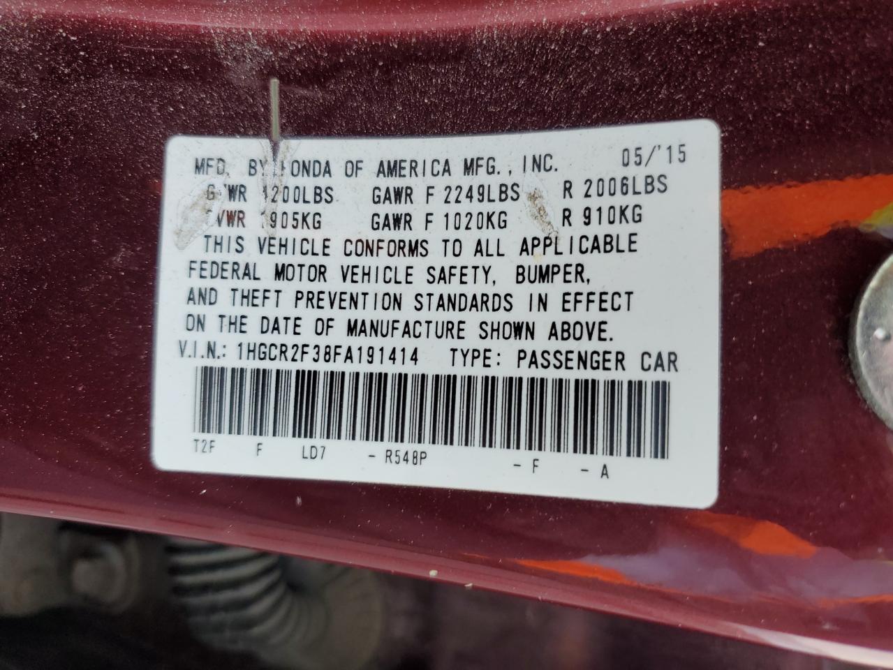 Колір БордовийЦиліндри 4VIN 1HGCR2F38FA191414Стан Заводиться та їде (перевірено)Ушкодження Передня або задня