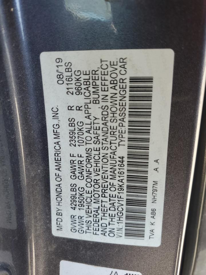 HONDA ACCORD 1.5 2019 р.в., (1HGCV1F19KA161644) з США