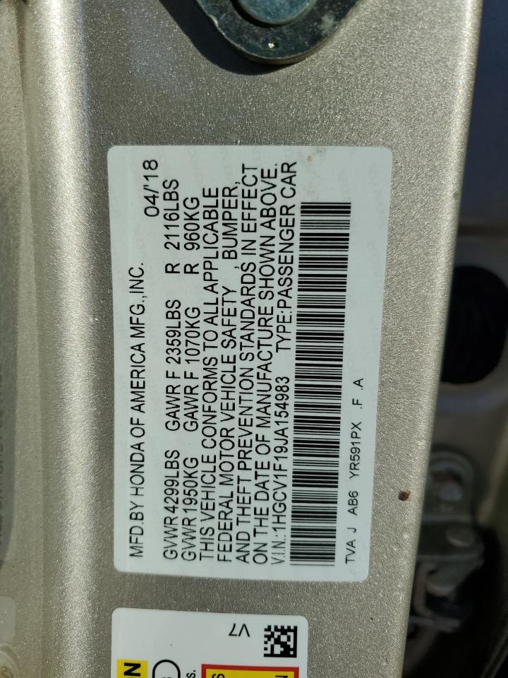 HONDA ACCORD 1.5 2018 р.в., (1HGCV1F19JA154983) з США