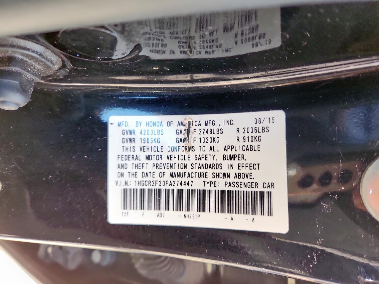 Колір ЧорнийЦиліндри 4VIN 1HGCR2F30FA274447Стан Заводиться та їде (перевірено)Ушкодження Передня або задня