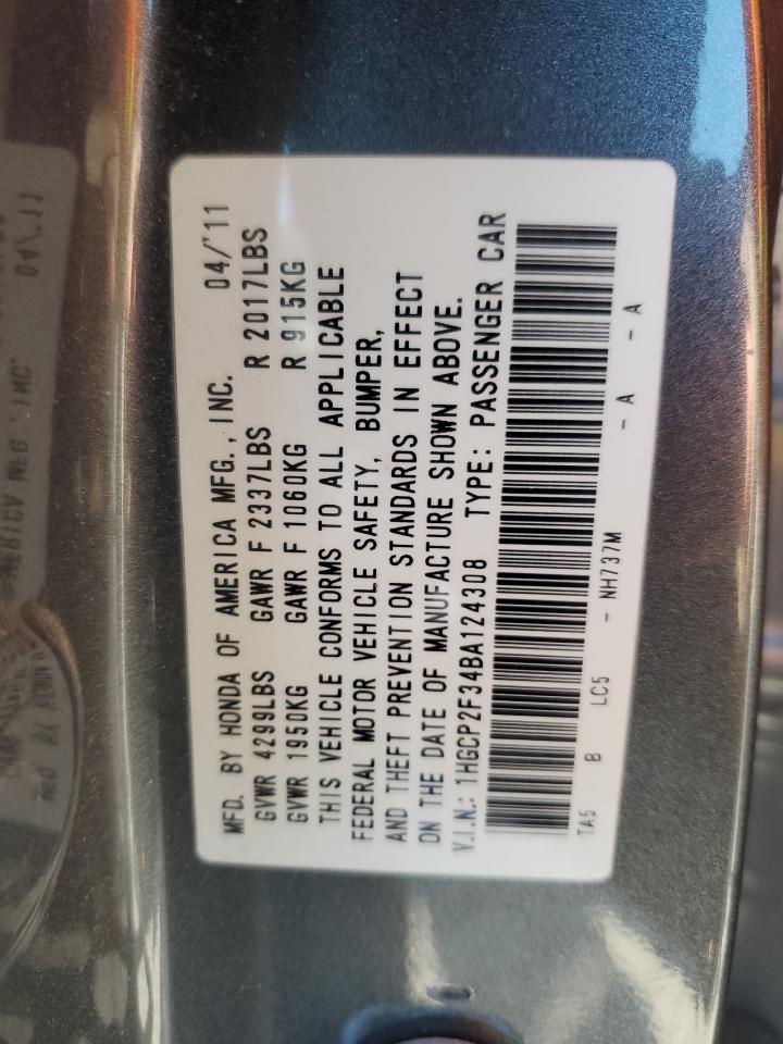 Колір СірийЦиліндри 4VIN 1HGCP2F34BA124308Стан Заводиться та їде (перевірено)Ушкодження Передня або задня