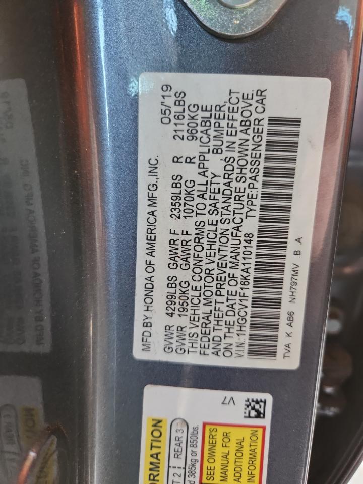 HONDA ACCORD 1.5 2019 р.в., (1HGCV1F16KA110148) з США