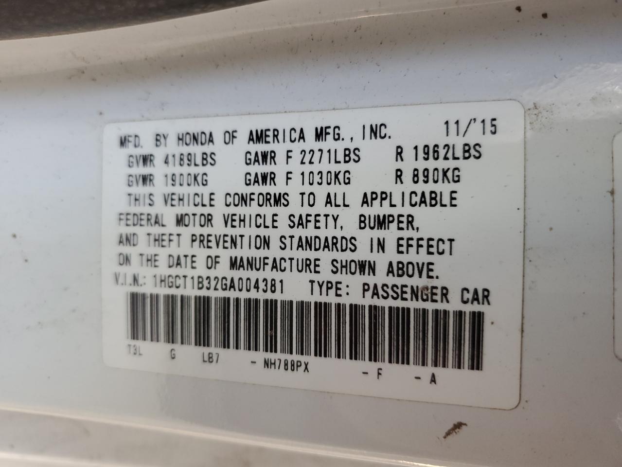 Колір БілийЦиліндри 4VIN 1HGCT1B32GA004381Стан Заводиться та їде (перевірено)Ушкодження Передня або задняДата аукціону 2025-11-10