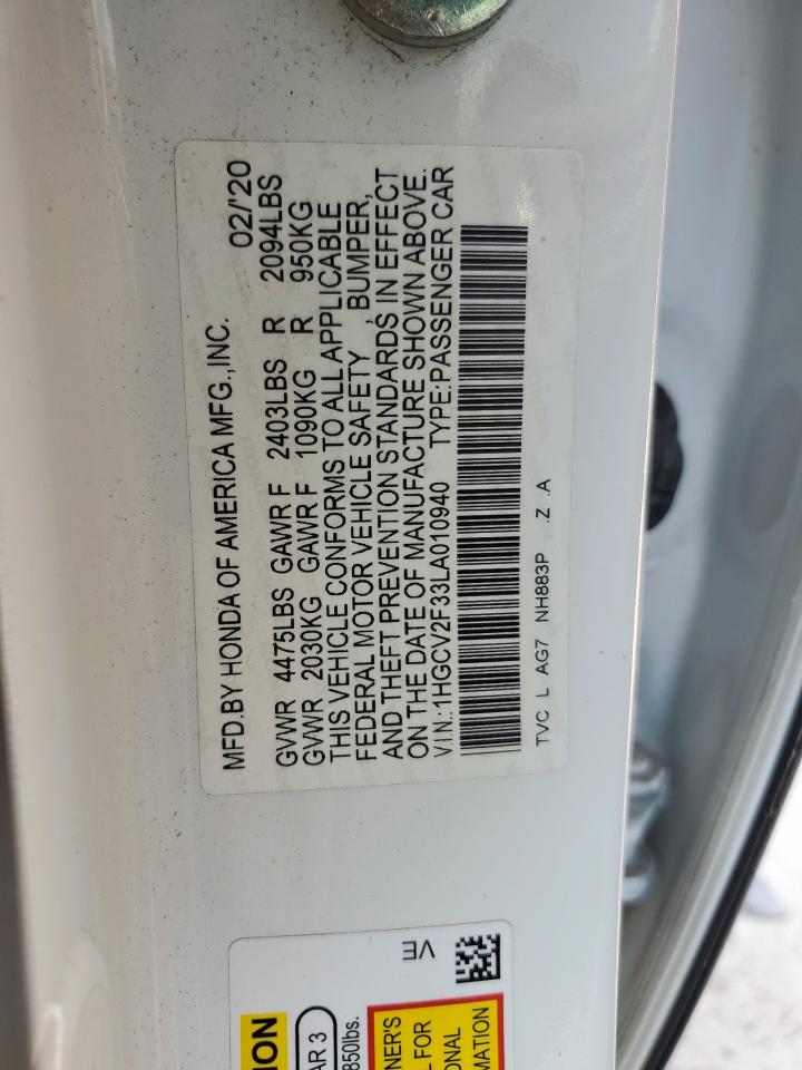 HONDA ACCORD 2.0 2020 р.в., (1HGCV2F33LA010940) з США